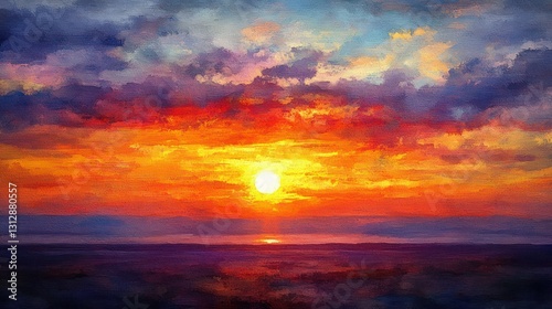 sunset, sky, cloud, sunrise, colours, orange, red, yellow, painting, art, dramatic, horizon, landscape, nature, beautiful, vibrant, digital, impressionism, cloudscape, ocean, sea, dramatic sky, fiery, gold, colourful, beautiful sunset, impressionist, cloud, warm colors, digital artwork, landscaped