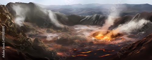 Dramatic Volcanic Crater Wallpaper and Background with Rising Steam and Glowing Lava