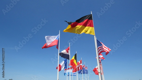 memorial, flag, flag, europa, wind, disembarkation, peace, unit, unify, symbol, emblem, blustery, country, national, nation, france, us, german, britain, alien, foreigner, worldwide, world, globalism, international, international