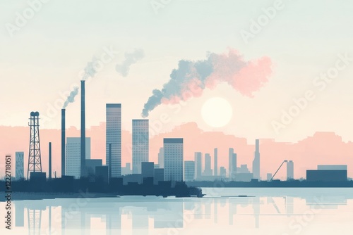 Draw illustrator of a minimalist Cityscape show PM2.5 pollution