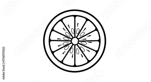 fruit, slice, citrous, drawing, illustration, graphic, minimalist, segment, section, seed, circle, shape, outline, line, icon, symbol, isolated, white, background, flat, design, style, simple, clip art, vector, single, element, black, white background, round, food, fresh, raw, healthy, diet, nourishment, vegan, vegetarian, ingredient, tropical, summer, juicy, ripe, graphic design, art, artwork, monochrome, line art, clean