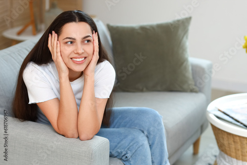 dreaming, home, sofa, woman, young, adult, attractive, background, beautiful, brainstorm, caucasian, colours, communication, concept, dream, dreamy, emotional, expression, fantasy, female, girl, happy, idea, imagination, indoor, lifestyle, mind, mood, people, person, portrait, pretty, showing, sitting, thinks, thinking, thought, thoughtful, thought, vibe
