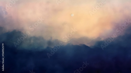 Dreamlike Watercolor Gradient Landscape Soft Blurred Misty Mountain Scenery