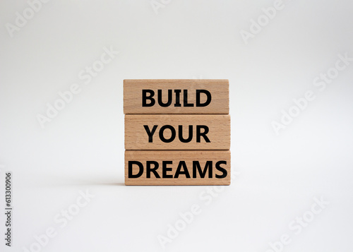 Dreams symbol. Concept word Build your Dreams on wooden blocks. Beautiful white background. Business and Build your Dreams concept. Copy space