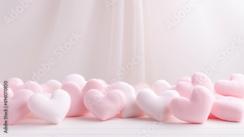 dreamy atmosphere with an image of cotton fabric hearts on a pristine white background.