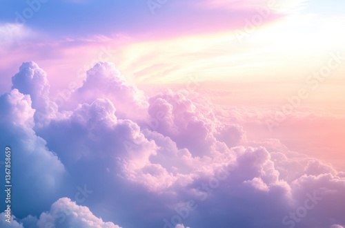 Dreamy Cumulus Clouds at Sunset with Pastel Colors and Bright Sky