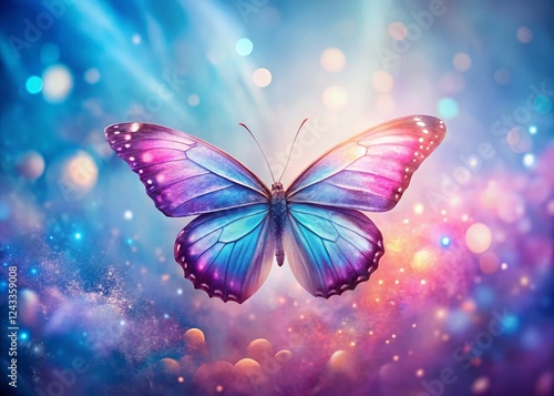 Dreamy Pastel Butterfly in Soft Bokeh Sky - Stock Photo
