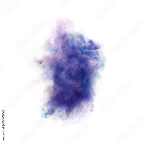 Dreamy purple and blue smoke cloud swirling on a white background, creating a mystical, soft, and abstract visual effect ideal for backgrounds, creative projects, digital art, or modern design