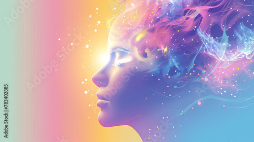 Dreamy Thoughts: A Vector Background with a Dreamy Representation of a Human Head, Incorporating Dreamlike Imagery and Soft Colors, Ideal for Dream Interpretation Themes