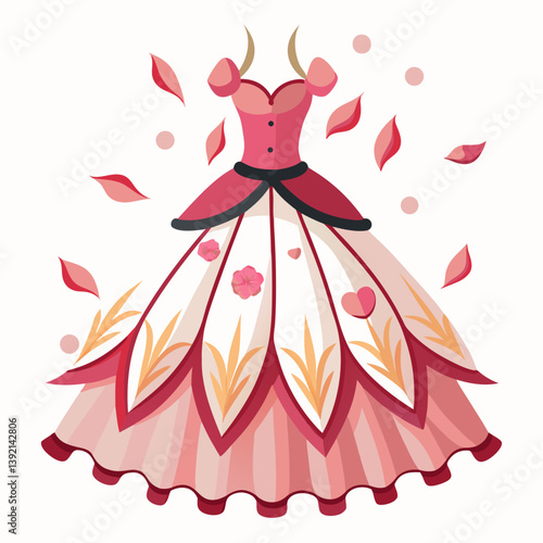 dress, vector, fashion, illustration, cartoon, woman, princess, wedding, child, love, art, bride, beauty, drawing, design, doll, style, pink, heart, clothing, kid, angel, fairy, pattern, silhouette