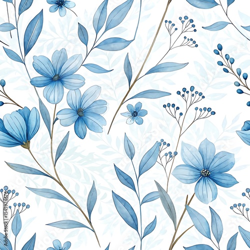 Dried Blue Flower Seamless Watercolor Botanical Pattern