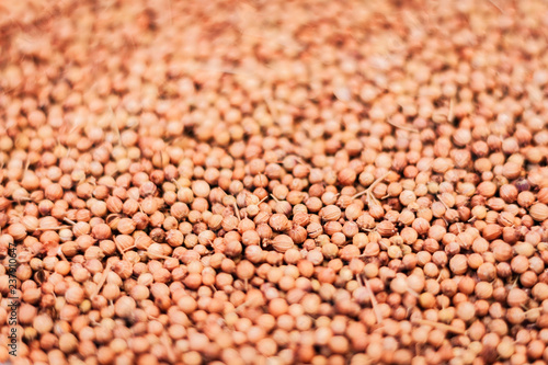 Dried coriander seeds (Coriandrum sativum) closeup background texture