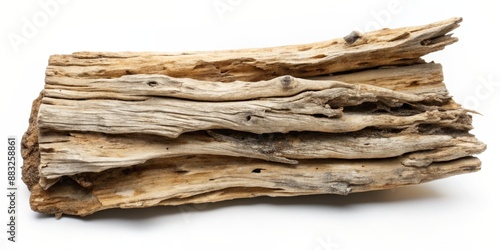 Driftwood Piece with Texture, Close-up of a Weathered Log, Isolated on White, Driftwood, Texture, Natural, Wood