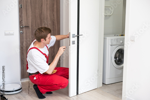 hand, frame, person, house, man, construction, occupation, craftsman, repairman, manual, equipment, metal, tool, drilling, handyman, fixing, montage, knob, installing, installation, improvement, assembly, door, handle, lock, work, industry, working man, job, industrial, hole, repair, mature, drill, building, screw, fitting, wood, adjustment, build, labor, fitter, gnawing, carpenter's shop, home, carpenter, men at work, action
