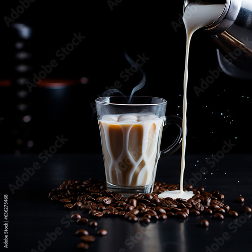 drink coffee and milk dark background cappuccino pouring in the air created with Generative Ai