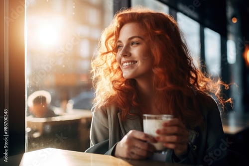 drink, hot drink, adult, cafes, gold, space, woman, woman, person, businesswoman, photo, portrait, product, window, people, laugh, table, downloadable, coffee cup, graphic, glasses, happy, human, photo, smile, face, hair, head, milk, bar, cup, mug, relaxation, coffee break, digital artwork, happiness, realistic, negative, female, image, hours, contemplation, refreshment, red-haired