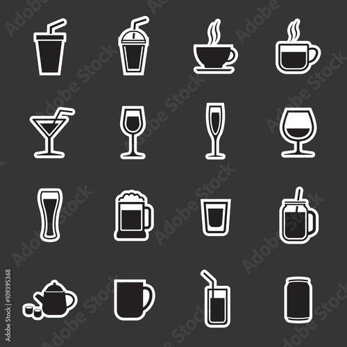 drink, icon, vector, glasses, wine, cocktail, cup, beer, hot drink, alcohol, tea, set, bottle, soda, water, bar, juice, symbol, champaign, pictogram, food, beverage, line, design, martini, mug, ice, hot, eatery