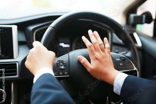 Drive while in traffic. Furious, angry, and honk the car's horn while driving.