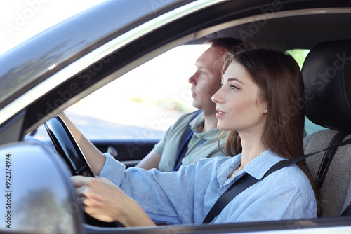 adult, auto, automobile, background, beginner, car, caucasian, course, drive, driver, driving, education, examiner, explaining, female, inexperienced, inside, inspector, instruction, instructor, learn, learner, learning, lesson, licence, licence, male, man, passing, people, practice, safety, school, student, study, test, traffic, training, transport, transportation, vehicle, woman, young