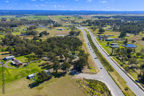 Drone aerial photograph of The Northern Road and surrounding area running through the suburb of Bringelly in the southwestern region of greater Sydney New South Wales, Australia.
