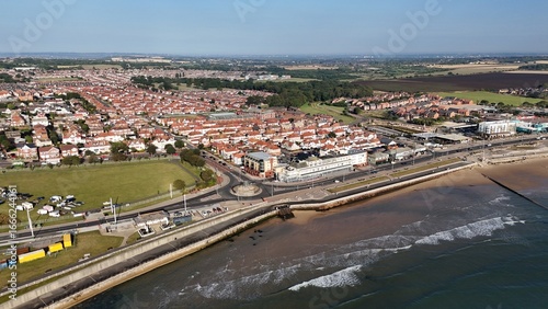 Drone Aerial View of Roker Beach, Seaburn Beach, and Roker Pier in Sunderland, Tyne and Wear, North East England, Coastal Landscape from Above