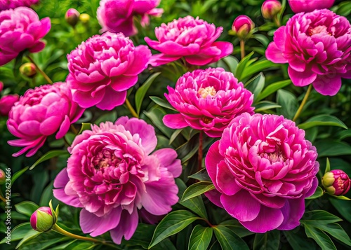 peony, pink flower, bush, aerial photography, garden, flower, nature, spring, summer, landscape, vibrant, lush, beauty, floral, plant, flower petals, detail, closeup, aerial view, blooming, macro, full bloom, pink, green, foliage, high-coloured, colours, texture, floral pattern, garden design