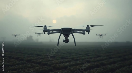 drone, farming, agriculture, technology, innovation, field, rural, countryside, aerial, monitoring, surveying, crop, harvest, automation, future, modern, fog, mist, weather, atmosphere, aethereal, spiritual, moody, dark, remote control, air, sky, sun, horizon, landscape, outdoors, vista, scenic, farm, growth, harvesting, plant, plantation, dirtied, cultivation, crop
