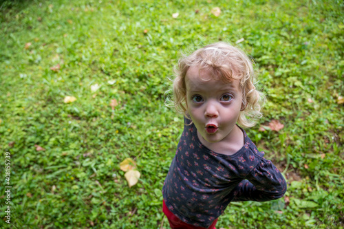 garden, spring, time, season, harvest, pecking, picking, organic, ecology, agriculture, country, fresh, home, grown, healthy, fruit farm, green, cute, blond, girl, children, childhood, family, happiness, kindergarten, caucasian, woman, portrait, face, face, making, smile, blink, wink, empty, space, grass, pasture, meadow, background, farm, farming, farmer, gardener, gardening
