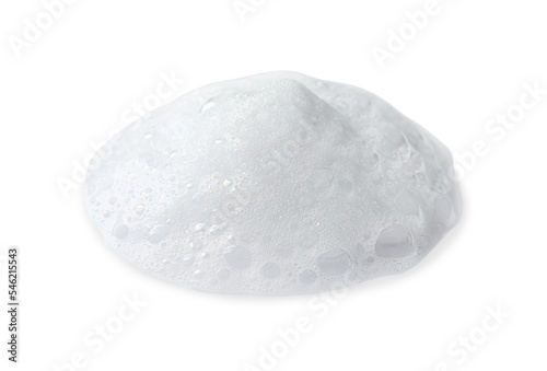Drop of fluffy soap foam on white background