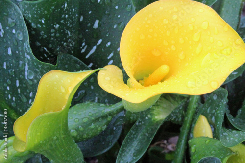 isolated, yellow, fresh, white, green, nature, flower, closeup, colours, organic, plant, natural, lily, calla lily, fragrant, bouquet, gardening, flower, bloom, blossom, rain, drop, droplet, leaf, leaf, summer