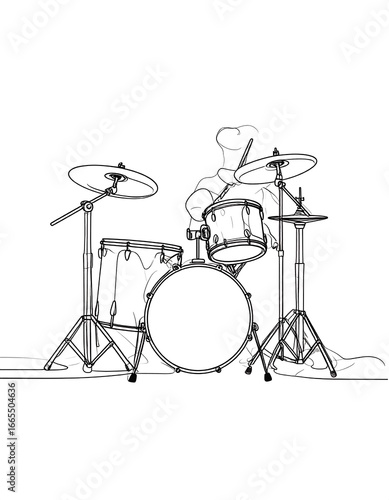 Drum set and drummer, line art