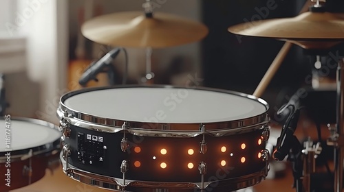 Drumming session home studio music performance interior close-up rhythm exploration