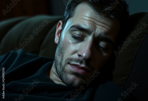 people, blurred, moody, portrait, visible, photorealistic, feature, insertion, facial, intimate, male, partially, dimly, closed, couch, tilted, lit, copy, figure, atmosphere, head, drunk, space, eye, human, room