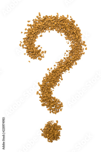 Dry instant coffee granules in the shape of a question mark - brown texture