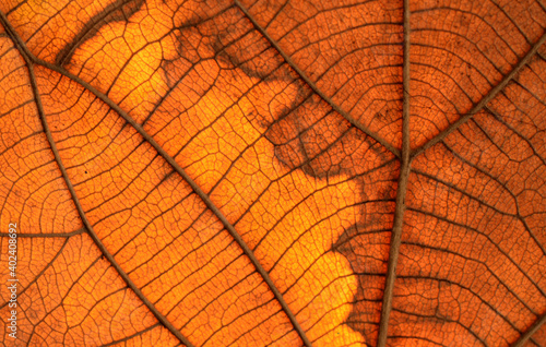 Dry leaf texture and nature background Brown leaf texture material And beautiful golden yellow Beautiful lines
