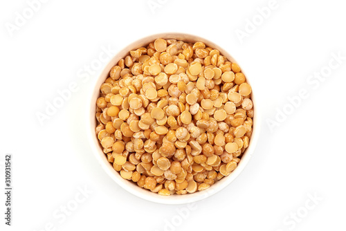 Dry peas in the bowl, isolated on white background
