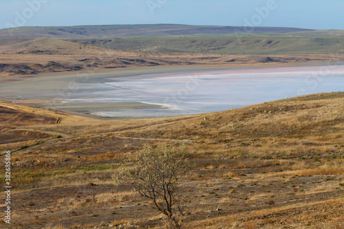 lake, salt, saline, waterless, dry, calamity, hot, disaster, hill, slope, horizon, grass, steppe, prairie, plain, field, summer, season, warm, warmth, day, landscape, scene, panoramic, scenic, scenery, nature, environment, relax, amazing, vacation, glow, heat