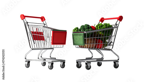 Dual 3D Shopping Cart Set Empty and Full isolated on transparent background