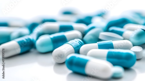 Dual-Tone Pharmaceutical Array: Light Blue and off-White Pills on Sterile Background, Emphasizing Medicinal Range