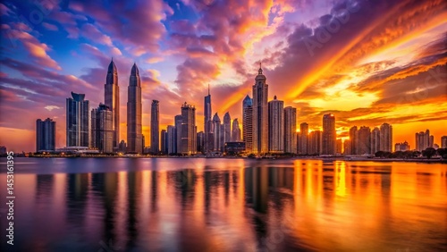 sunset, silhouette, city landscape, skyscraper, dubai, emirate, skyline, architecture, city, travel, tour tourism, photo, panoramic, view, night, evening, golden hour, building, urban, modern, luxury, water, sea, ocean, horizon, dramatic, beautiful, amazing, stunning, incredible, breathtaking, photo, image, picture, royalty free, hi-res