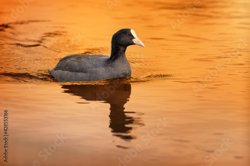 bird, duck, water, natura, sunset, orange, river, spring, yellow, background, image, sunrise