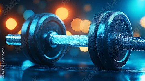 dumbbell on a dark background with lights, Strength Training, Fitness and Health, Work-out and Lifting weight