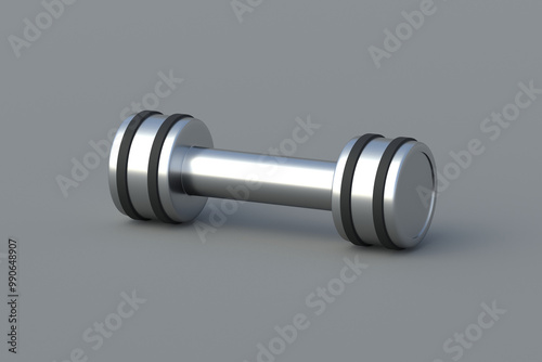 Dumbbell on gray background. Healthy lifestyle. Athletic equipment. Hobby and leisure accessories. Professional inventory. Lifting of physical power. 3d render