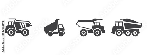vehicle, isolated, icon, truck, symbol, lorry, black, heavy, silhouette, transportation, transport, dump, vector, industry, service, business, delivery, car, cargo, white, industrial, pictogram, equipment, signs, machinery, machine, set, traffic, construction, design