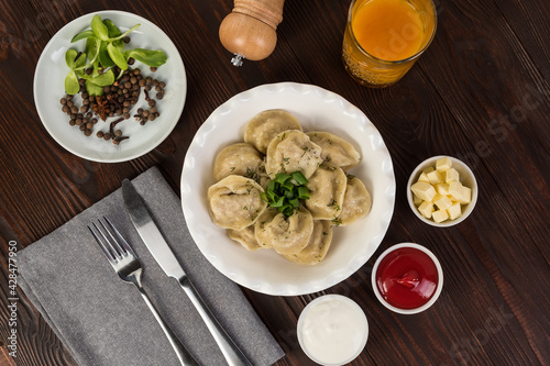 dumpling, fork, closeup, wooden, dairy, white, epicure, flour, chopping board, cream, background, tasty, sour, vegetable, uncooked, kitchen, salt, cook, peppercorn, healthy, food, plate, boiled, table, bowl, sour cream, ketchup, cooked, meat, ravioli, dish, steamed, traditional, meal, dinner, delicious, stuffed, cookery, homemade, dumpling, dough, cooking, receipe, lunch, ukrainian, fresh, ciabatta, bay leaf