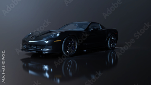 Dunkler Sportwagen mit Spiegelung auf glattem Boden