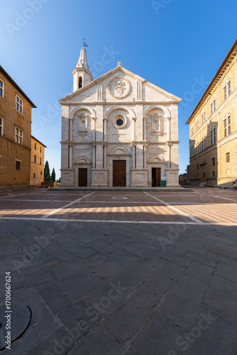 Duomo of Pienza standing in Piazza Pio II in Tuscany, Italy