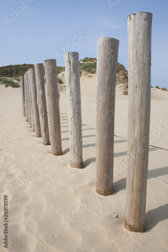 sea, sand, beach, nature, background, wood, wooden, rope, pole, white, water, landscape, line, coast, shore, desert, contrast, holland, poland, baltic, breakwater, wall, blue, fence, force, dutch, view, dune