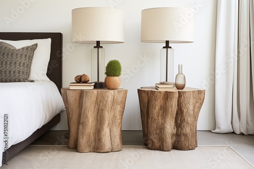Dutch-Inspired Living Space: Tree Stump Nightstands & Contemporary Light Fixtures Fusion