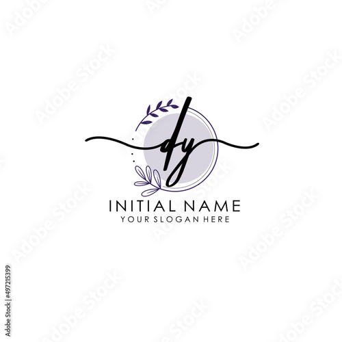 DY Luxury initial handwriting logo with flower template, logo for beauty, fashion, wedding, photography